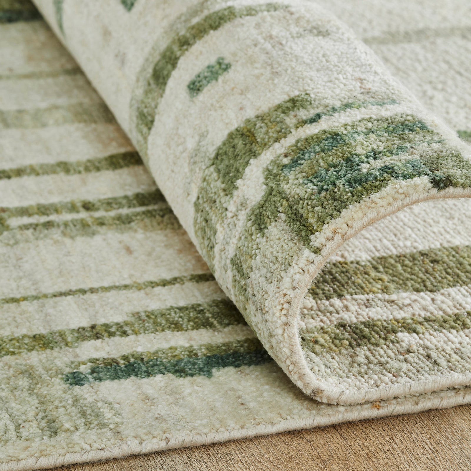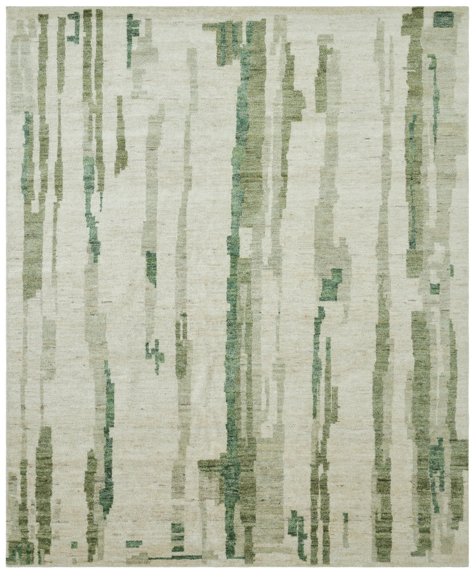 Modern linear designs and bold curves tell a story of artful simplicity in this cutting-edge area rug collection. Meticulously hand knotted of 100% premium hand-spun wool yarns.