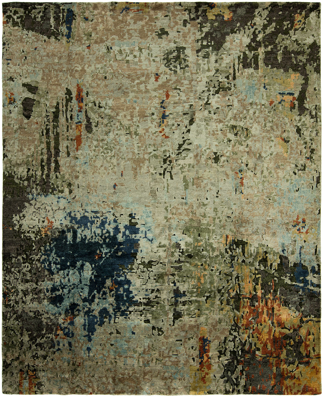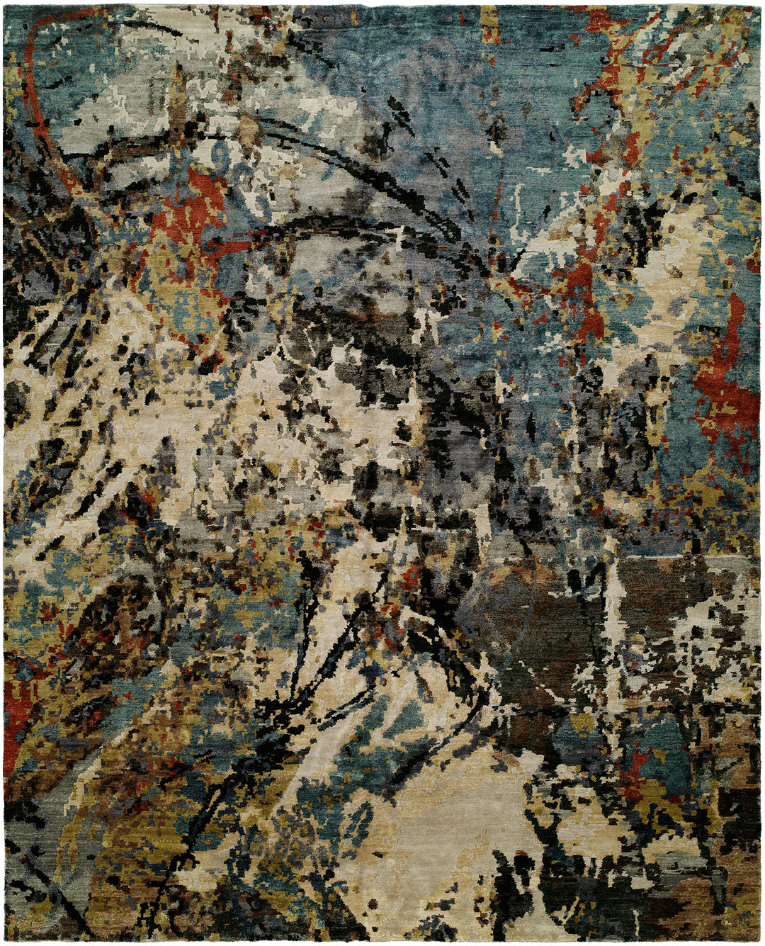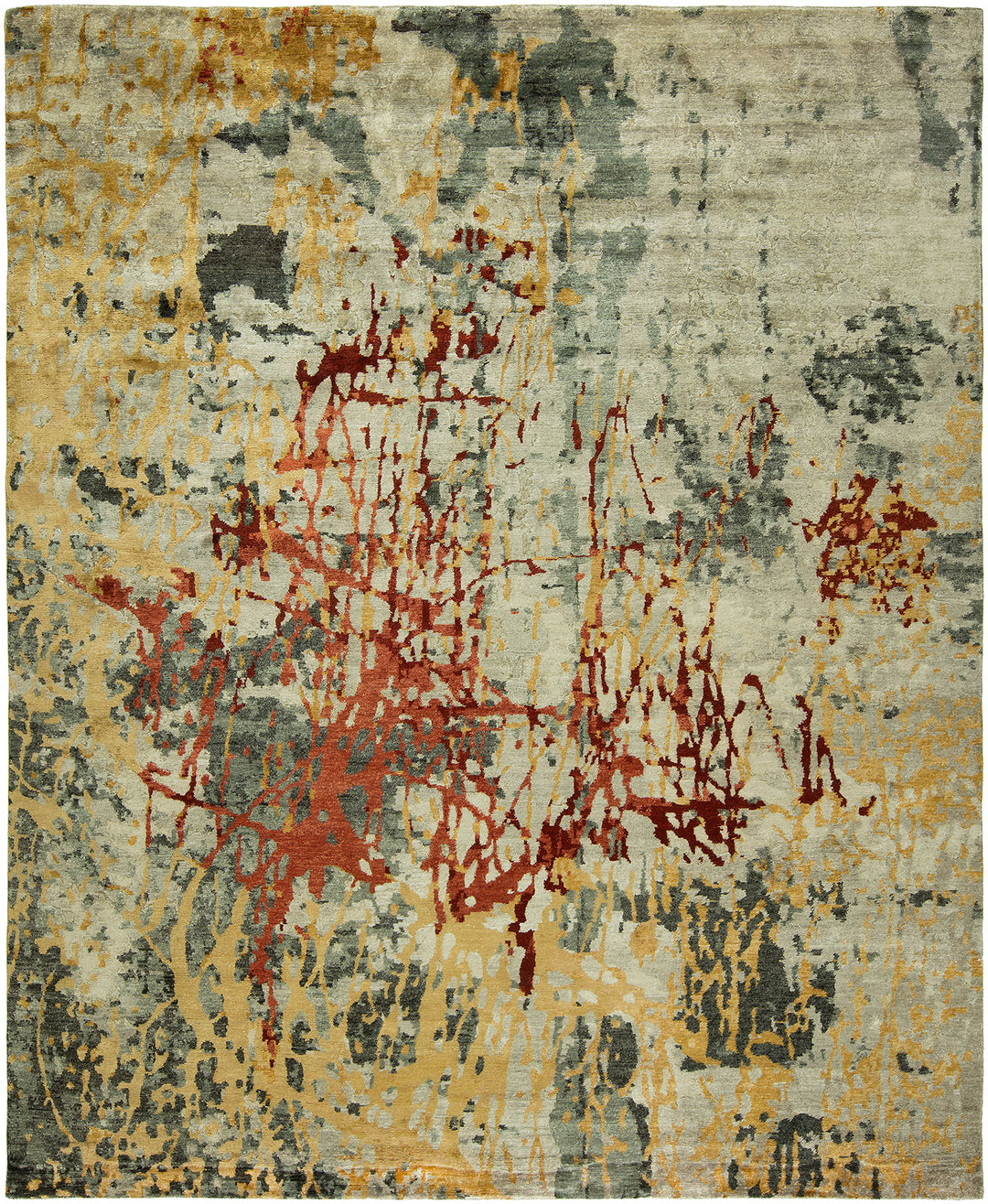 Each rug in the Juno collection is a modern abstract study in dimensional texture and high-energy explosions of color. All Juniper rugs are hand knotted in a Tibetan knot weave using 100% Silkette™, and specific designs within the collection have been hand carved to impart special high-low textural effects.